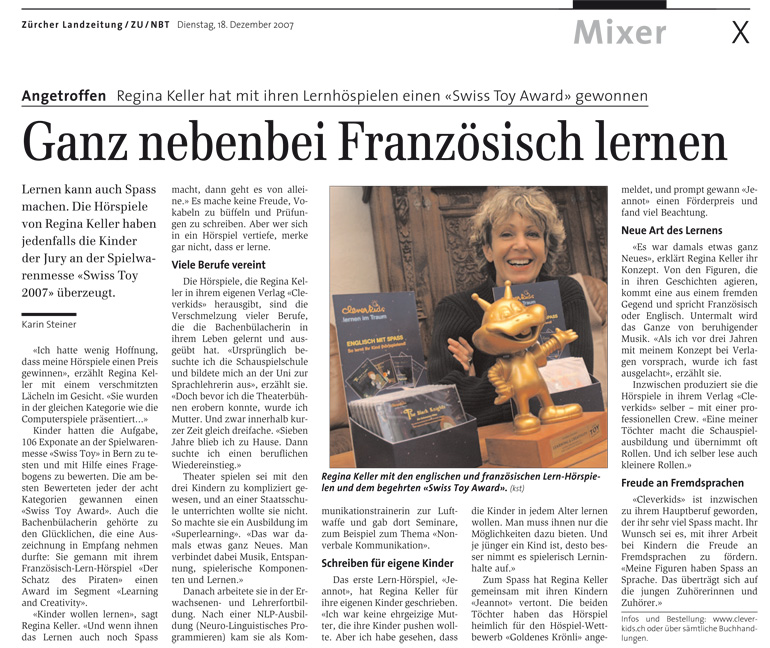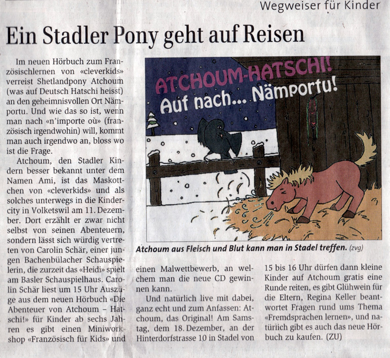 NZZ, BAZ, St. Galler Tagblatt, Zürcher Unterländer, Neues Bülacher Tagblatt, Berner Zeitung, Radio Pilatus, Radio Lichtenstein, KIDY, KinderMAX, Migrosmagazin, Basler Schulblatt